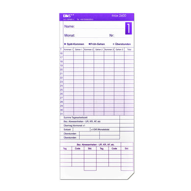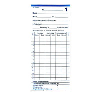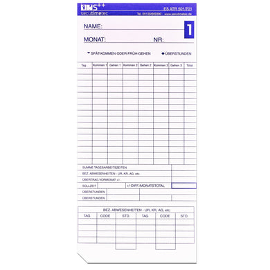 Stempelkarte STK0002/ Arbeitszeitkarte Typ 2043![]()  - Verkäufer